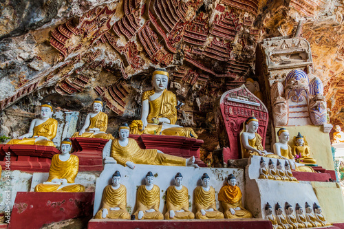 © Matyas Rehak, Fototapeta premium Buddha statues in Kawgun cave near Hpa An, Myanmar