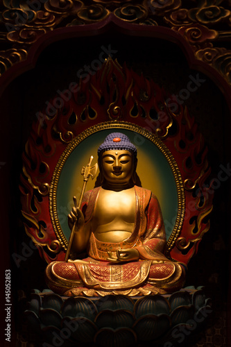 © zhu difeng, Fototapeta premium buddha statues in temple