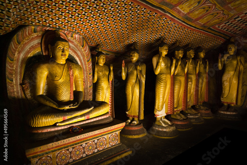 © Vidu Gunaratna, Fototapeta premium Buddha statues inside Dambulla cave teple complex