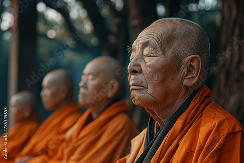 © deagreez, Naklejka premium Buddhism concept Generative AI picture with people doing yoga in nature feel connection with buddha