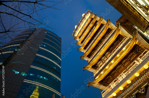 © Fotokon, Fototapeta premium Buddhist Jing'an Temple pagoda in Shanghai, China