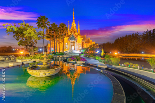 © chanchai, Fototapeta premium Buddhist temple with reflection on water landmark of Nakhon Ratchasima Province, Thailand