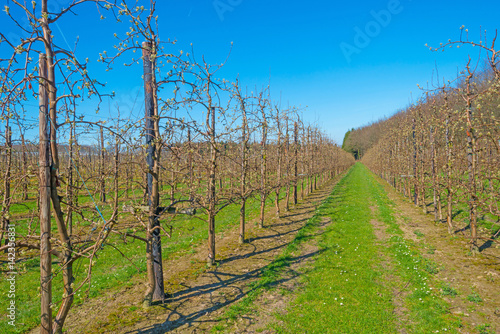 Naklejka premium Budding fruit trees in an orchard in spring
