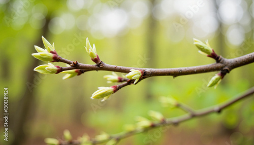 © Elenba, Fototapeta premium Budding tree branch in early spring, nature's renewal