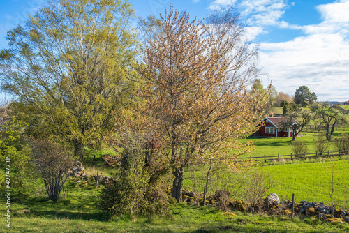 © Lars Johansson, Obraz premium Budding trees at a cottage in the spring