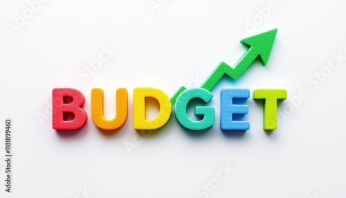 © Firman Dasmir, Fototapeta premium Budget Growth Concept with Colorful Lettering and a Green Arrow Pointing Upward