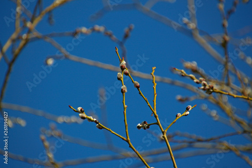 Fototapeta premium buds on willow branches against a blue sky
