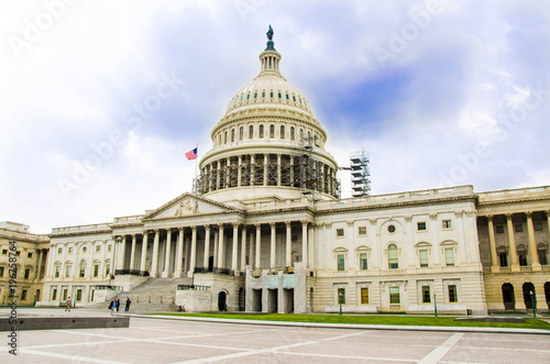 © Alina, Obraz premium Budynek stolicy Stanów Zjednoczonych, Waszyngton w pochmurny dzień latem. Rząd Stanów Zjednoczonych Ameryki