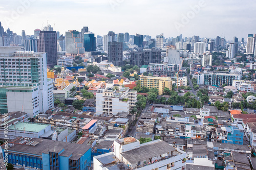© RYOTA IWASAKI, Naklejka premium budynki miejskie z błękitnym niebem