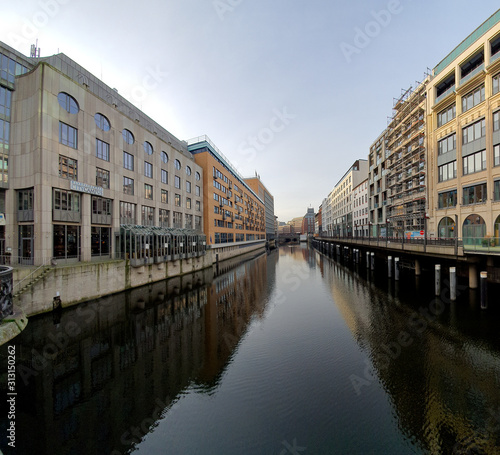 © michalsen, Fototapeta premium Budynki nad kanałami wodnymi w centrum miasta. Hamburg, Niemcy