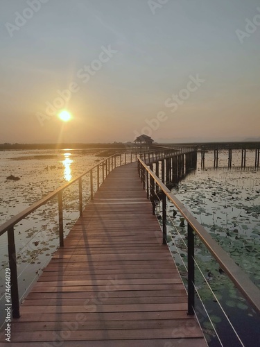 Obraz premium Bueng Bua Wood Boardwalk at Thung Sam Roi Yot, Prachuap KhiriKhan Sunset