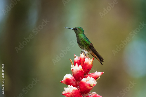 Naklejka premium Buff-tailed coronet (Boissonneaua flavescens), in flight, 4K resolution, best Ecuador humminbirds