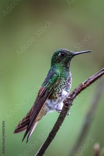 Obraz premium Buff tailed coronet hummingbird perching on a branch in the rainforest,...