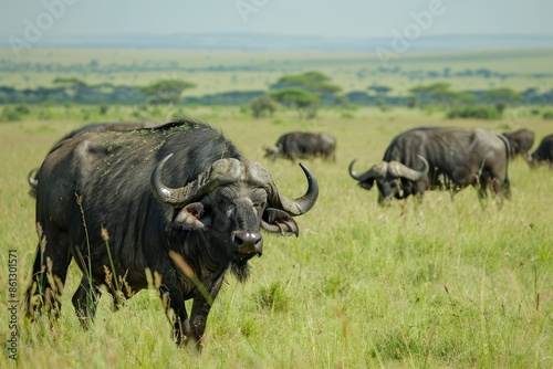 Fototapeta premium Buffalo family grazing