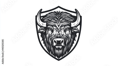 © Mufarokah, Obraz premium Buffalo Head Emblem on Shield