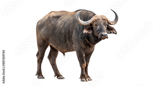 Fototapeta premium Buffalo in a natural pose on a transparent background.