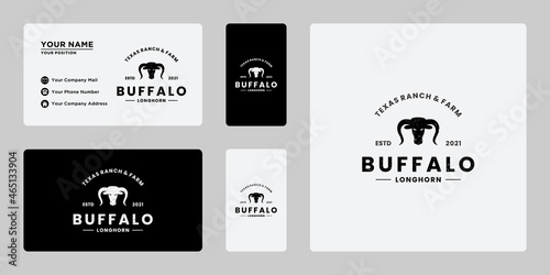 Obraz premium buffalo ranch longhorn logo design vintage.