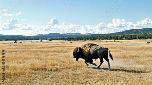 © Lycee, Obraz premium Buffalo Running in a Golden Meadow