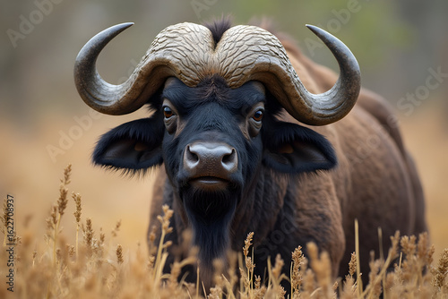 © Aldy, Fototapeta premium Buffalo Standing in Tall Grass Portrait Wildlife Scene