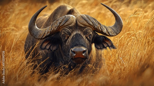 Naklejka premium Buffalo Standing Tall in Grasslands