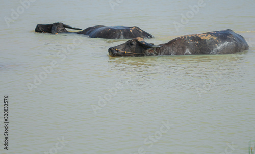 © tcareob72, Fototapeta premium buffalo that is playing in the river in the summer.