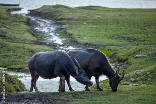 © ธานี สุวรรณรัตน์, Fototapeta premium buffalo walking to eat grass