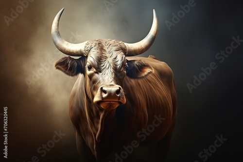 © zgurski1980, Naklejka premium Buffalo with big horns on dark background