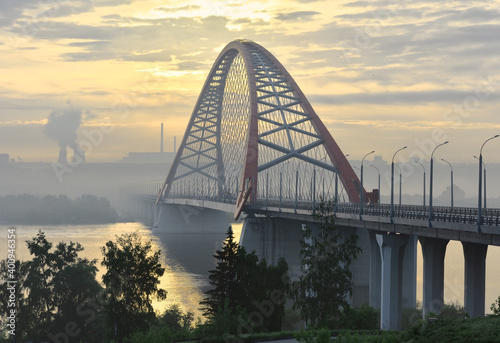 © ArhSib, Naklejka premium Bugrinskij bridge road at sunrise