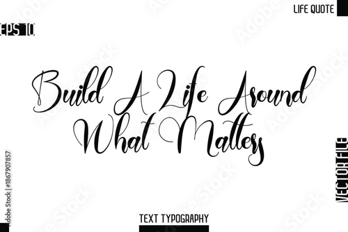 Fototapeta premium Build A Life Around What Matters -Motivational Life Quotes Modern Cursive Typography Text Poster Design