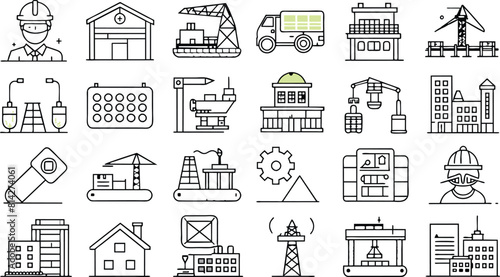 Naklejka premium Build and construction icon set, Solid icon collection, Editable stroke....