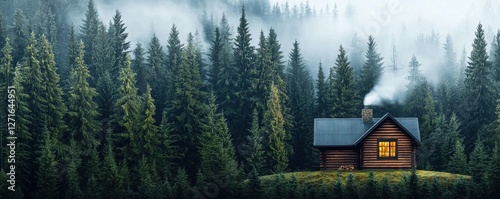 © Weerapat, Fototapeta premium Building a cozy home forested area cabin retreat natural environment scenic viewpoint rustic charm
