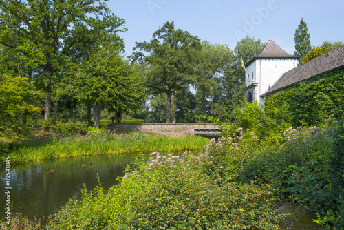 © Naj, Obraz premium Building along the shore of a lake in summer