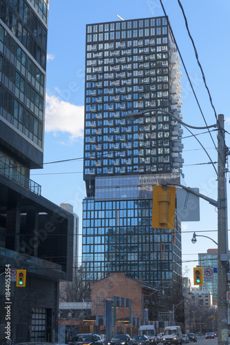 Naklejka premium (building at center) north facing elevation of TOOR Hotel - JDV by Hyatt located at 203 Jarvis St, Toronto
