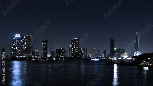 © Voranut, Fototapeta premium Building at night river Bangkok, Thailand. Cityscape concept.