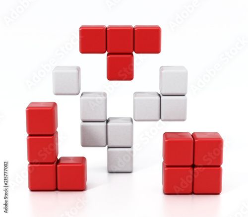 © Destina, Obraz premium Building blocks forming a cube alltogether. 3D illustration