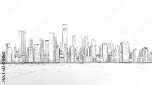 © WrongWay, Fototapeta premium Building city line one continuous outline single art sketch skyline