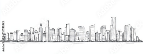 © Максим Зайков, Naklejka premium Building city line one continuous outline single art sketch skyline. City illustration building line silhouette house doodle apartment construction cityscape urban architecture hand background linear.