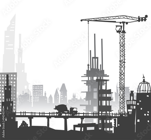 Naklejka premium Building construction city in the city. Illustration with roads and transport...