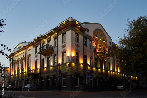 © Y, Fototapeta premium Building designed in early art nouveau style. Evening scene