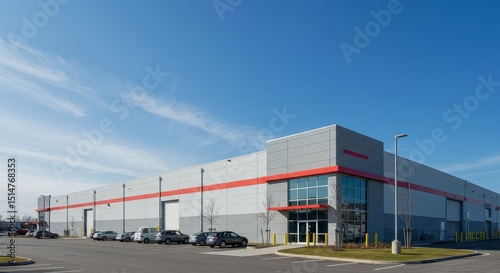 Obraz premium Building Exterior Commercial Warehouse Architecture under Blue Sky Photo