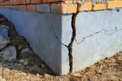 Fototapeta premium Building foundation wall showing concrete crack damage