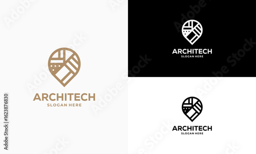 © Lucky Luck, Fototapeta premium Building House Point Logo designs concept vector, Construction Logo template symbol icon, Real Estate logo symbol