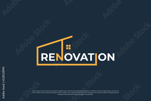 © Dendika, Obraz premium Building house structure logo design with typography art vector.