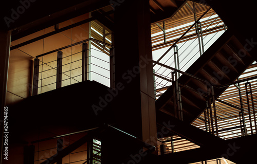 Obraz premium Building interior with stairs in the dusk