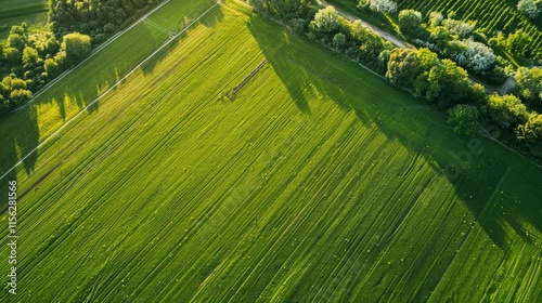 © Muhammad, Fototapeta premium Building land for new construction project on green meadow, plot for construction area