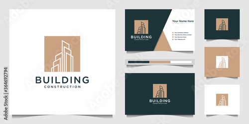 © suneo_99, Fototapeta premium Building logo design with modern concept. city building construction abstract for logo design inspiration. logo design and business card Premium Vector