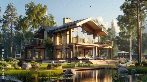 © Yevhen, Obraz premium Building new wooden house, Building process on construction site on sunny day