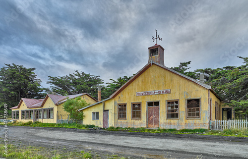 © Chris, Fototapeta premium Building of the abandoned sheep farm Estancia San Gregorio in Patagonia from the end of the 19th century