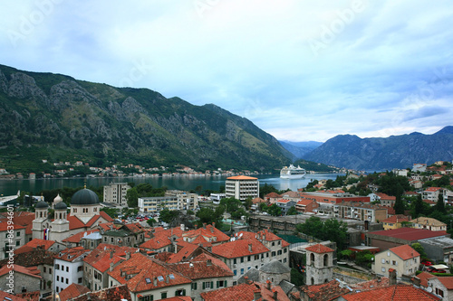 © kichigin19, Obraz premium building red rooftops European town on the coast
