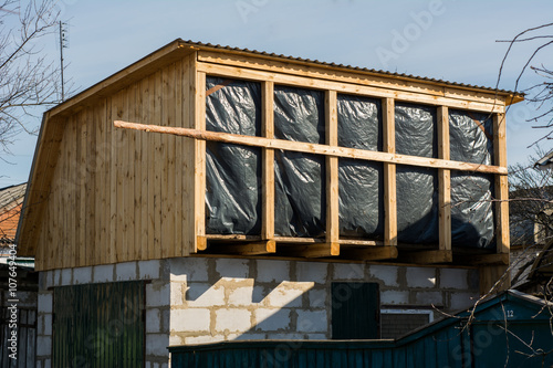© yurich84, Obraz premium Building second floor extension on garage with water protective barrier